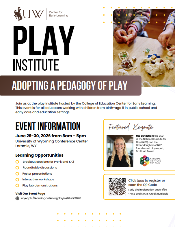 Birth-5 Teachers: Wyoming Quality Counts scholarships can help cover some of the costs of attending this event. Don’t forget to apply 45-days in advance to quality for financial support.